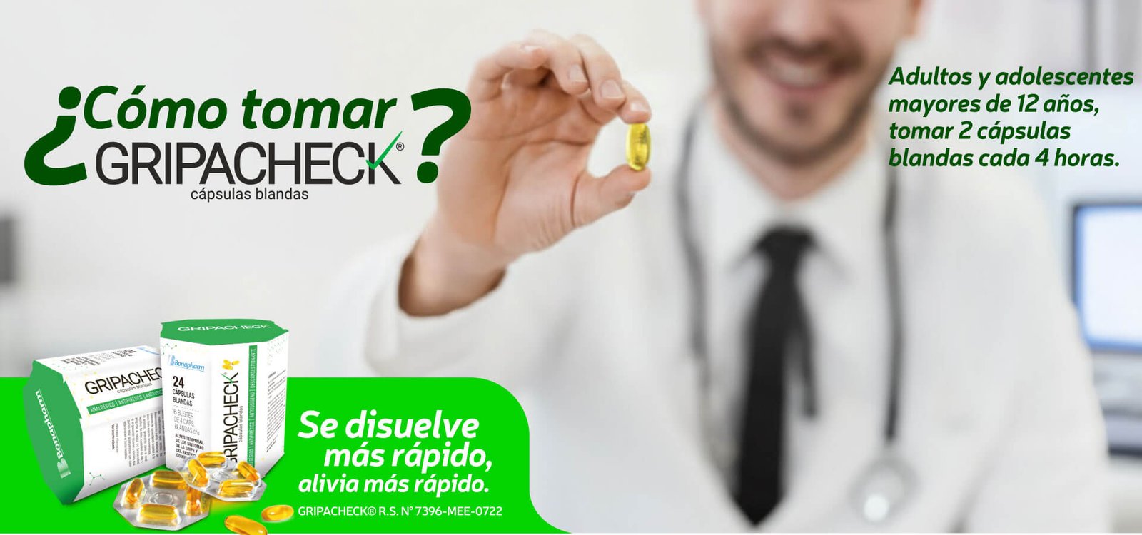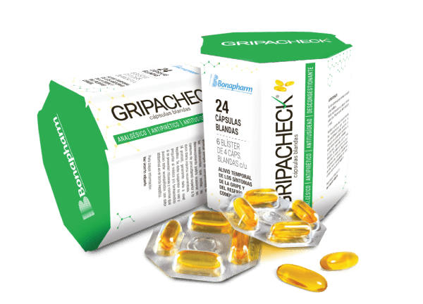 Gripacheck® está indicado como analgésico, antipirético, inhibidor de la tos y descongestionante nasal.
